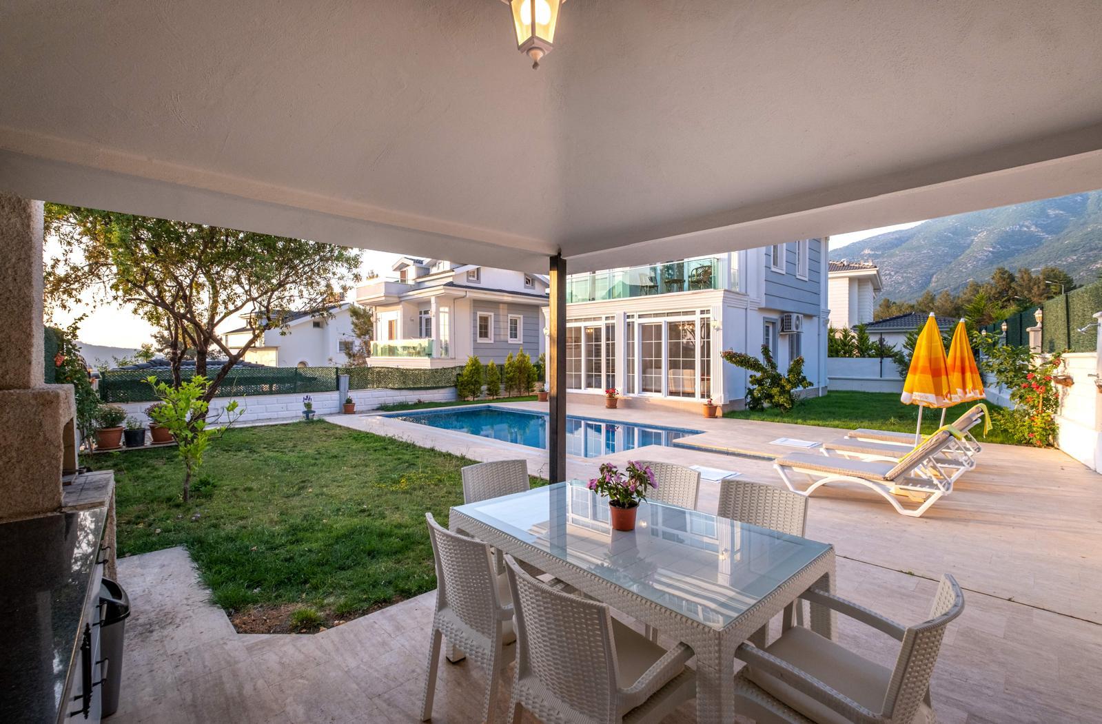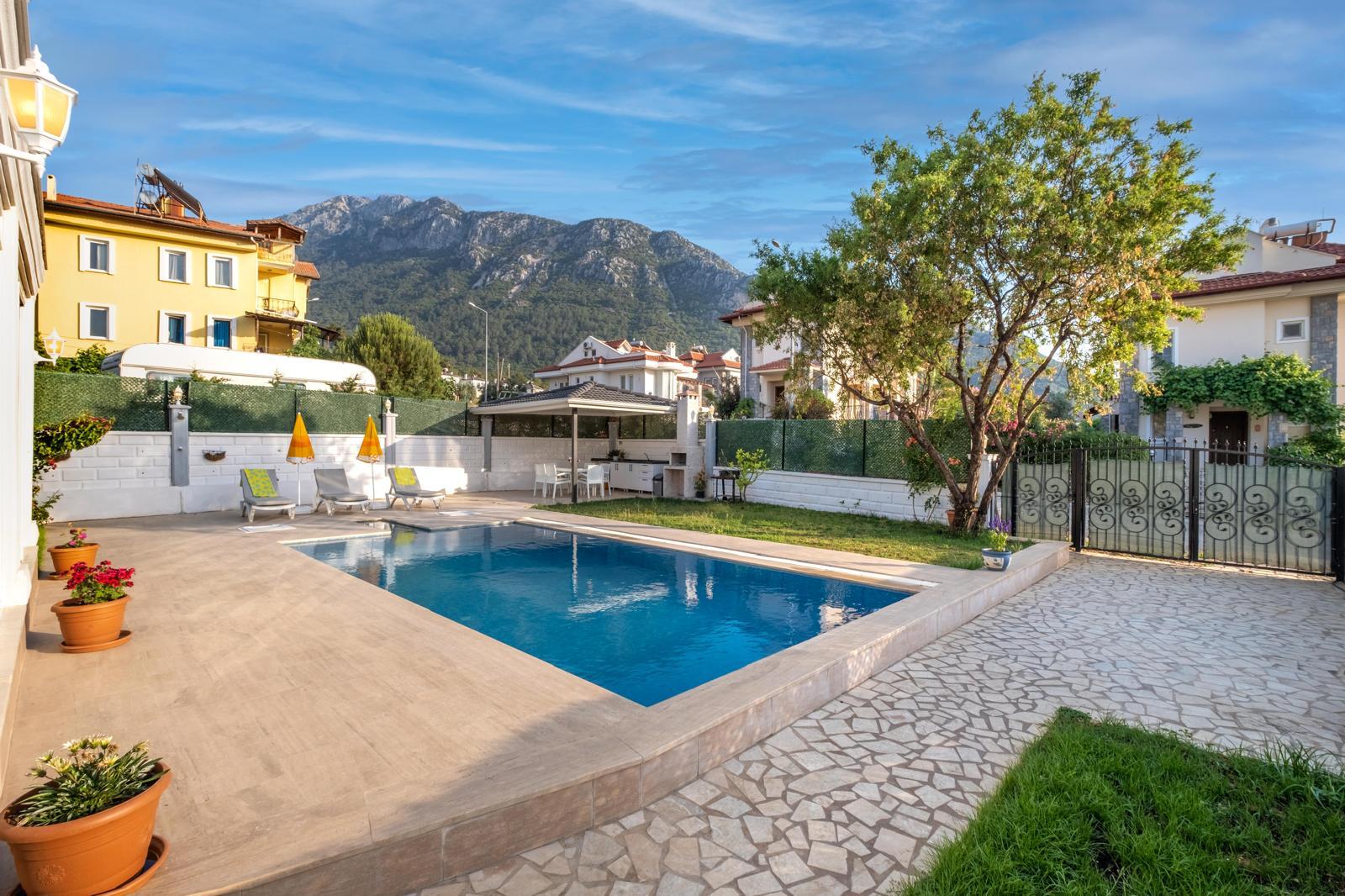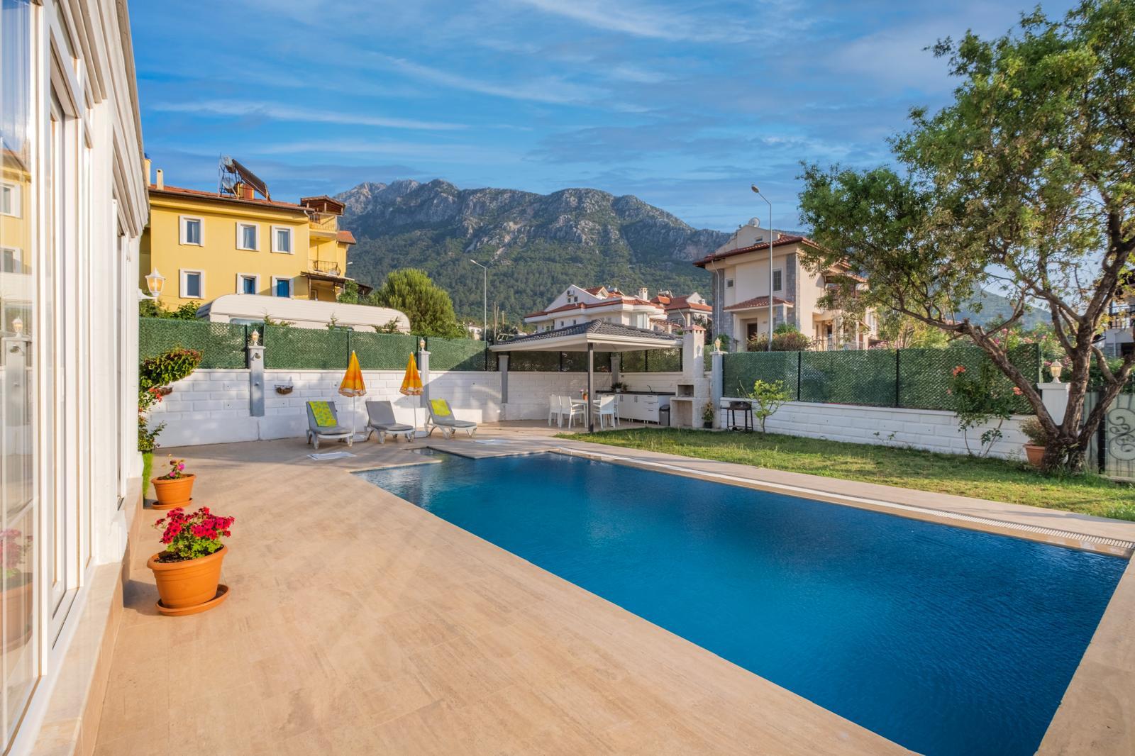 Elegant Accommodation: Oludeniz Villa with Private Pool in Fethiye offers a homestay experience with a swimming pool, garden, terrace, and free WiFi. Family rooms provide comfort for all guests.